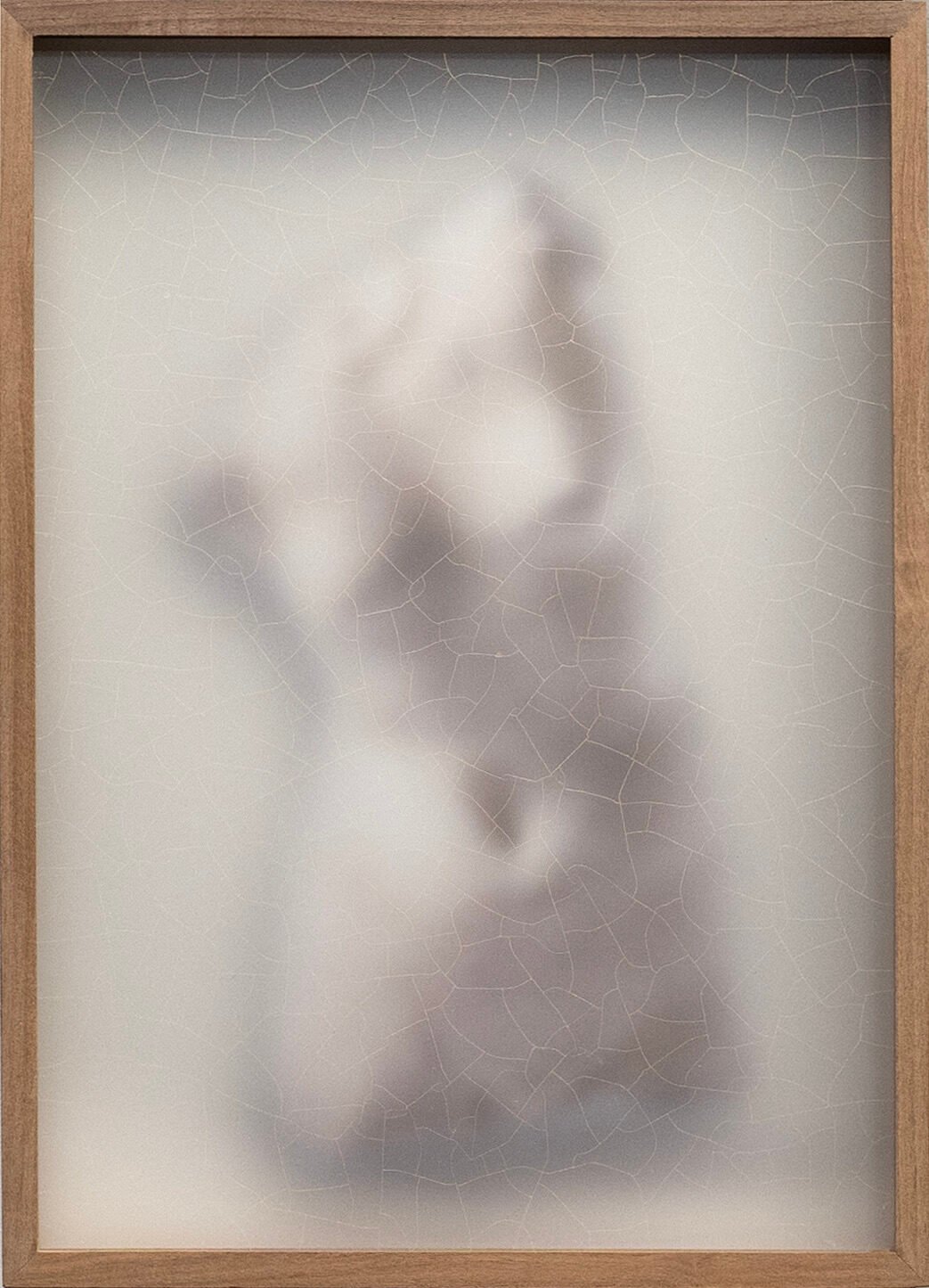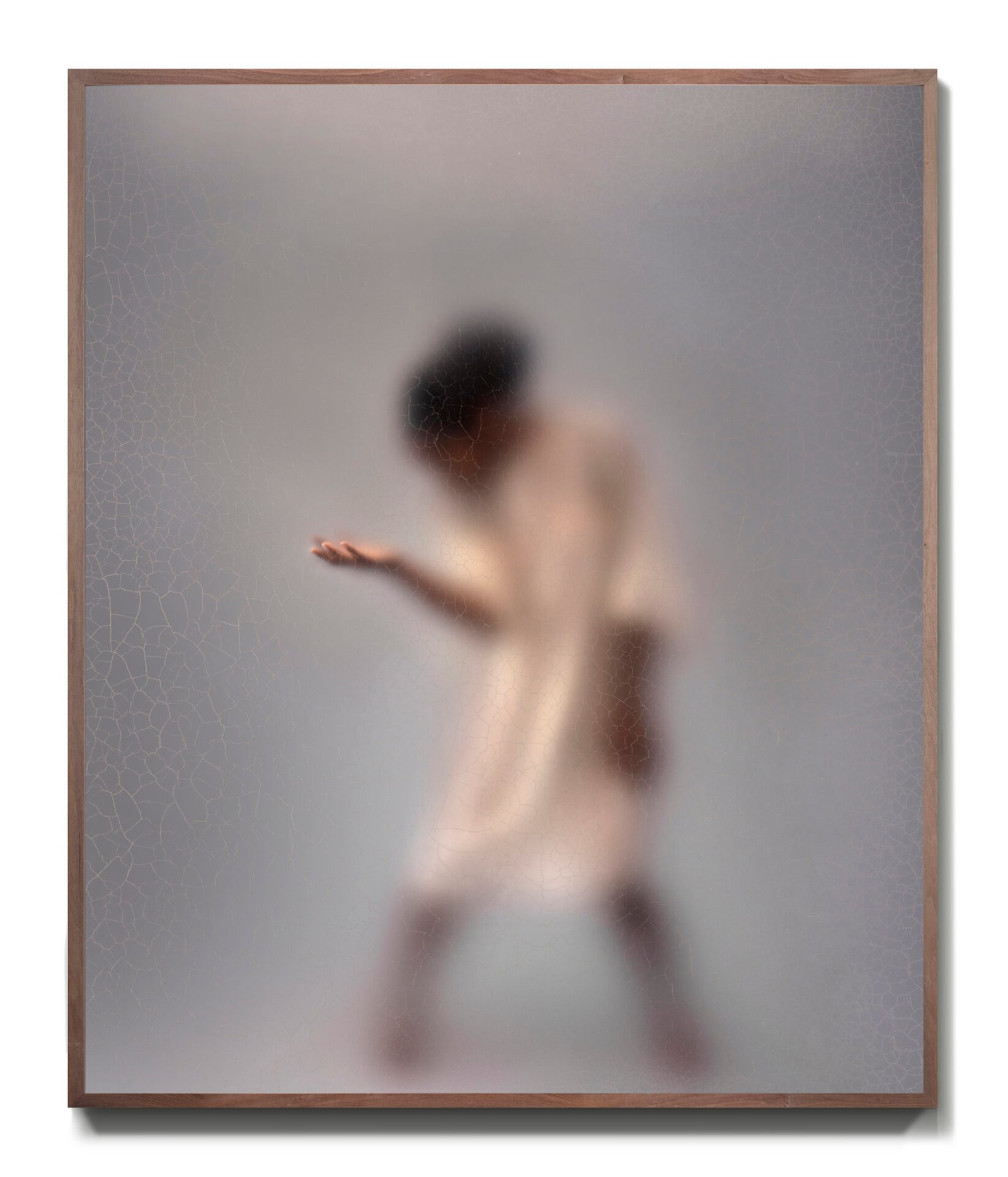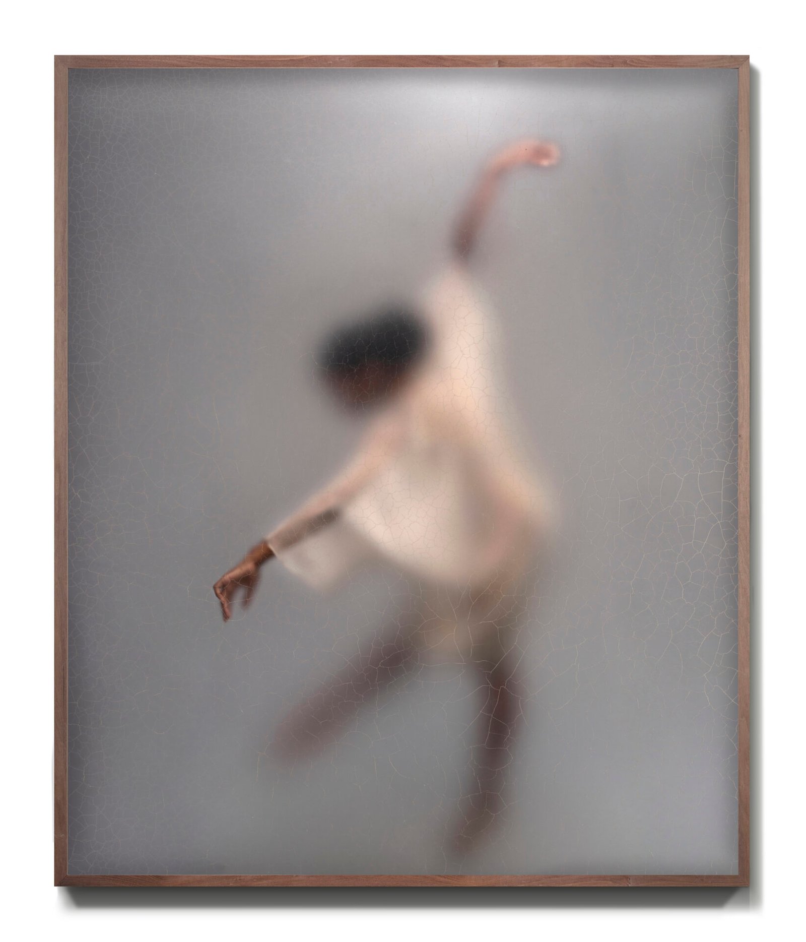 In his own words: “The juxtaposition between the eternal and the temporal, beauty and decay, appearing and disappearing is my main theme. All painters and photographers have the ability to freeze time and capture a single moment. I emphasize that moment by adding an element of time – not necessarily by using literal vanitas references but through the handling of materials. The use of craquelure is my symbol for time and introduces a visual element since it is oil paint and thus sharp, contrasting with the rest of the blurry image. Most of the distance is created by the way the picture is taken, through a matte medium. I print the image on to that same matte medium giving a further sense of distance. What I also like about the craquelure is the texture it gives to the surface or skin. The work becomes more material, more substantial, pointing toward painting instead of photography and thus encouraging a different way of perceiving the work. Within this visual language I`ve grown so comfortable with, I love to explore different themes.”