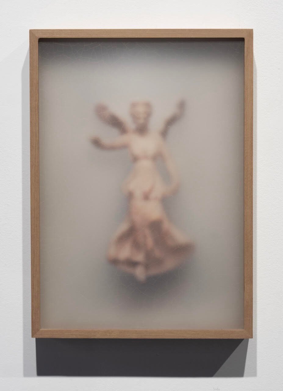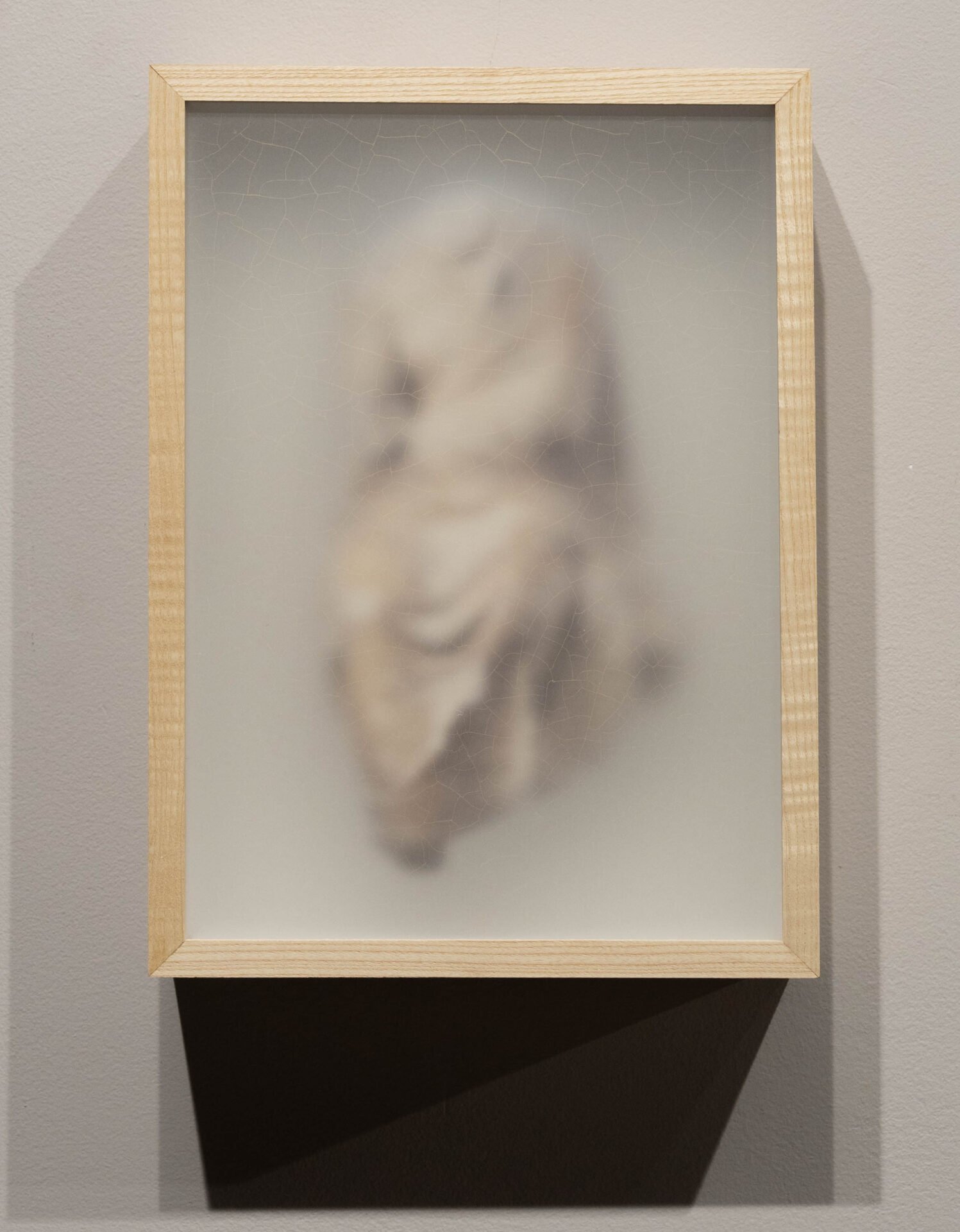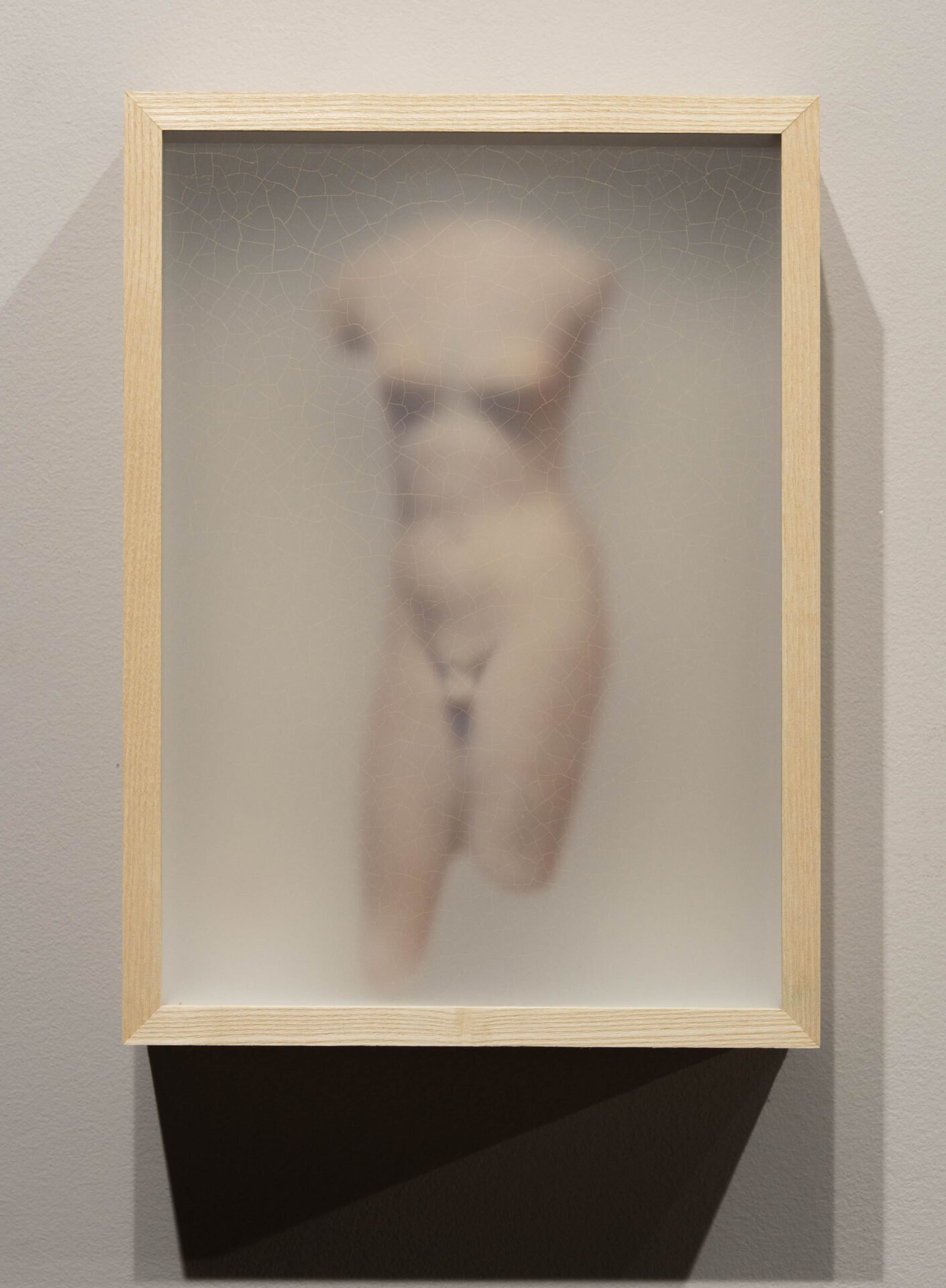 In his own words: “The juxtaposition between the eternal and the temporal, beauty and decay, appearing and disappearing is my main theme. All painters and photographers have the ability to freeze time and capture a single moment. I emphasize that moment by adding an element of time – not necessarily by using literal vanitas references but through the handling of materials. The use of craquelure is my symbol for time and introduces a visual element since it is oil paint and thus sharp, contrasting with the rest of the blurry image. Most of the distance is created by the way the picture is taken, through a matte medium. I print the image on to that same matte medium giving a further sense of distance. What I also like about the craquelure is the texture it gives to the surface or skin. The work becomes more material, more substantial, pointing toward painting instead of photography and thus encouraging a different way of perceiving the work. Within this visual language I`ve grown so comfortable with, I love to explore different themes.”
