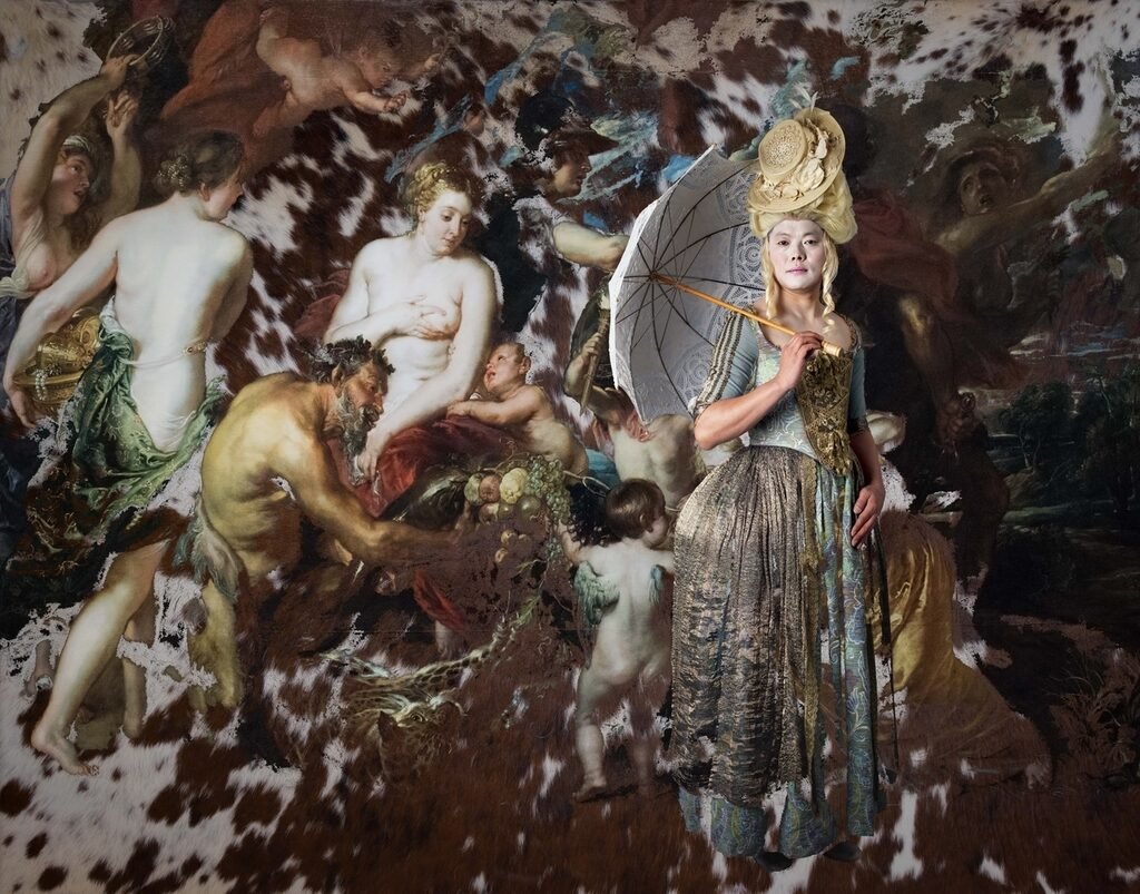 Gender, culture, isolation, prejudice, and stereotypes are explored in the work of Korean photographer Chan-Hyo Bae (born 1975, Busan, South Korea). Since graduating from the Slade School of Fine Art in 2007, Chan-Hyo Bae has expressed in his work the feelings of cultural and emotional estrangement he experienced when he first came to study in England. Several series with the title Existing in Costume (2007-16) saw him posing in a variety of female historical western costumes, integrating himself into a history and society from which he felt excluded. Researched in meticulous detail, he created elaborate scenes of himself as a noblewoman from Elizabethan to Regency periods.