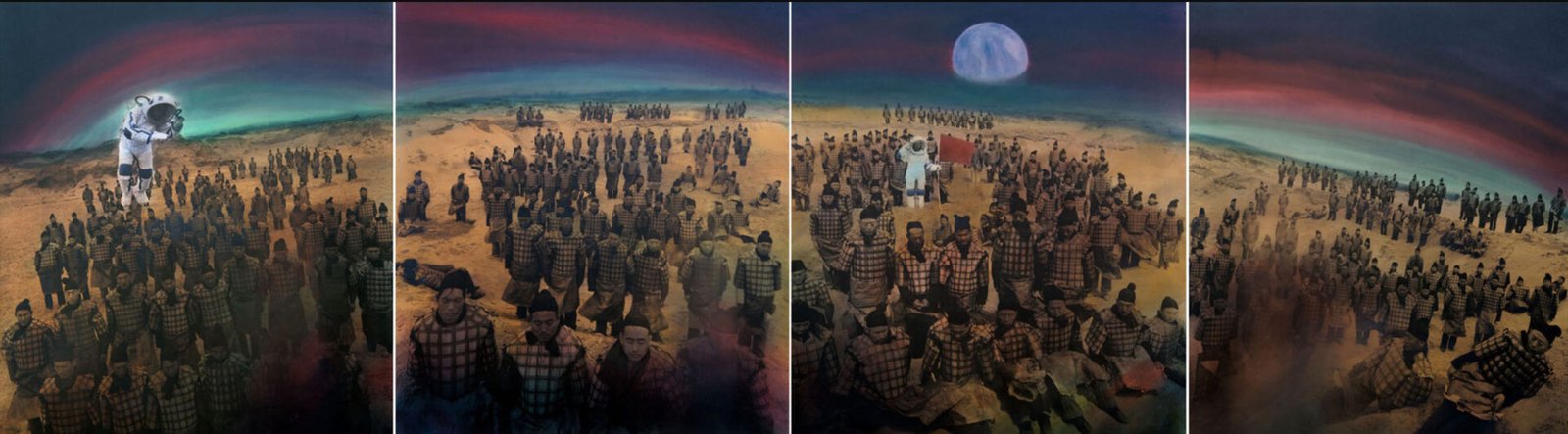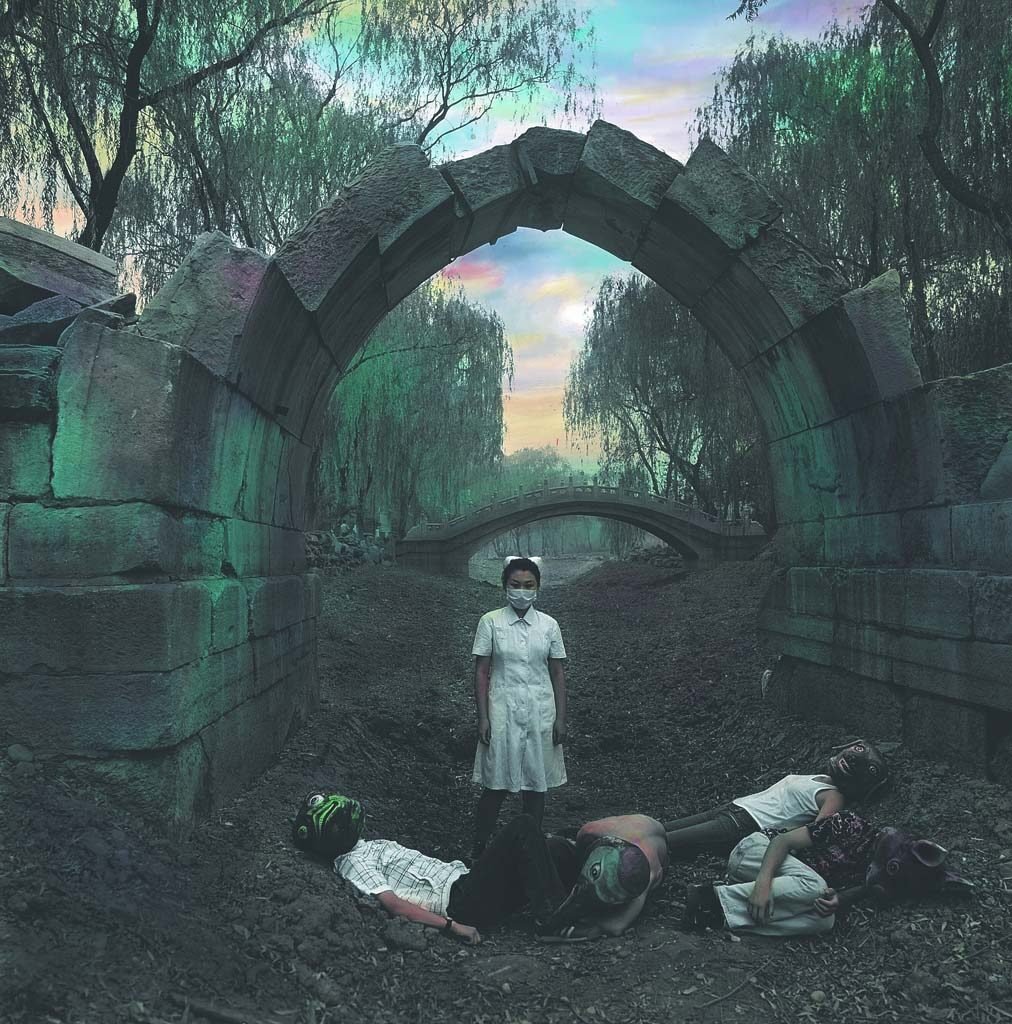 Chen Nong is in a sense more filmmaker than photographer. Each of his series is an epic undertaking. Once he has the seed of an idea, and has sketched it out in detail, the artist then goes on a pilgrimage to far-flung parts of China to find the appropriate location to shoot. There, he builds a set and assembles his cast – often comprising willing volunteers and friends – in order to realise his precise vision.
