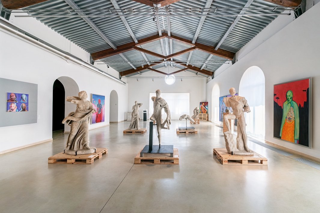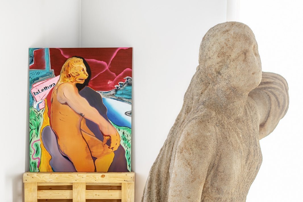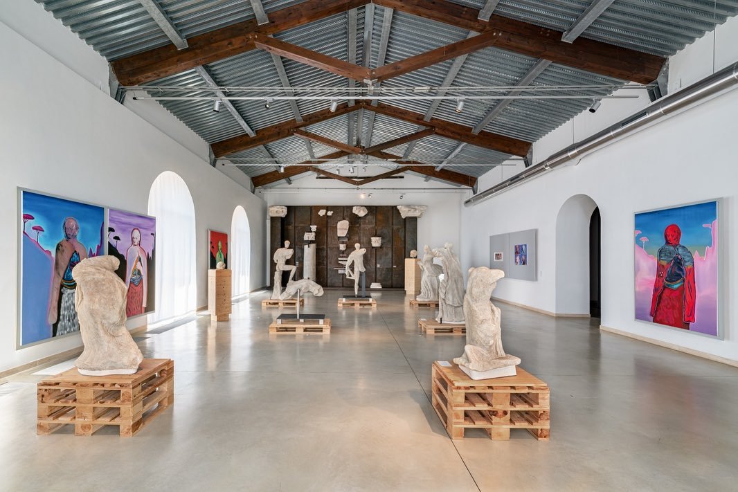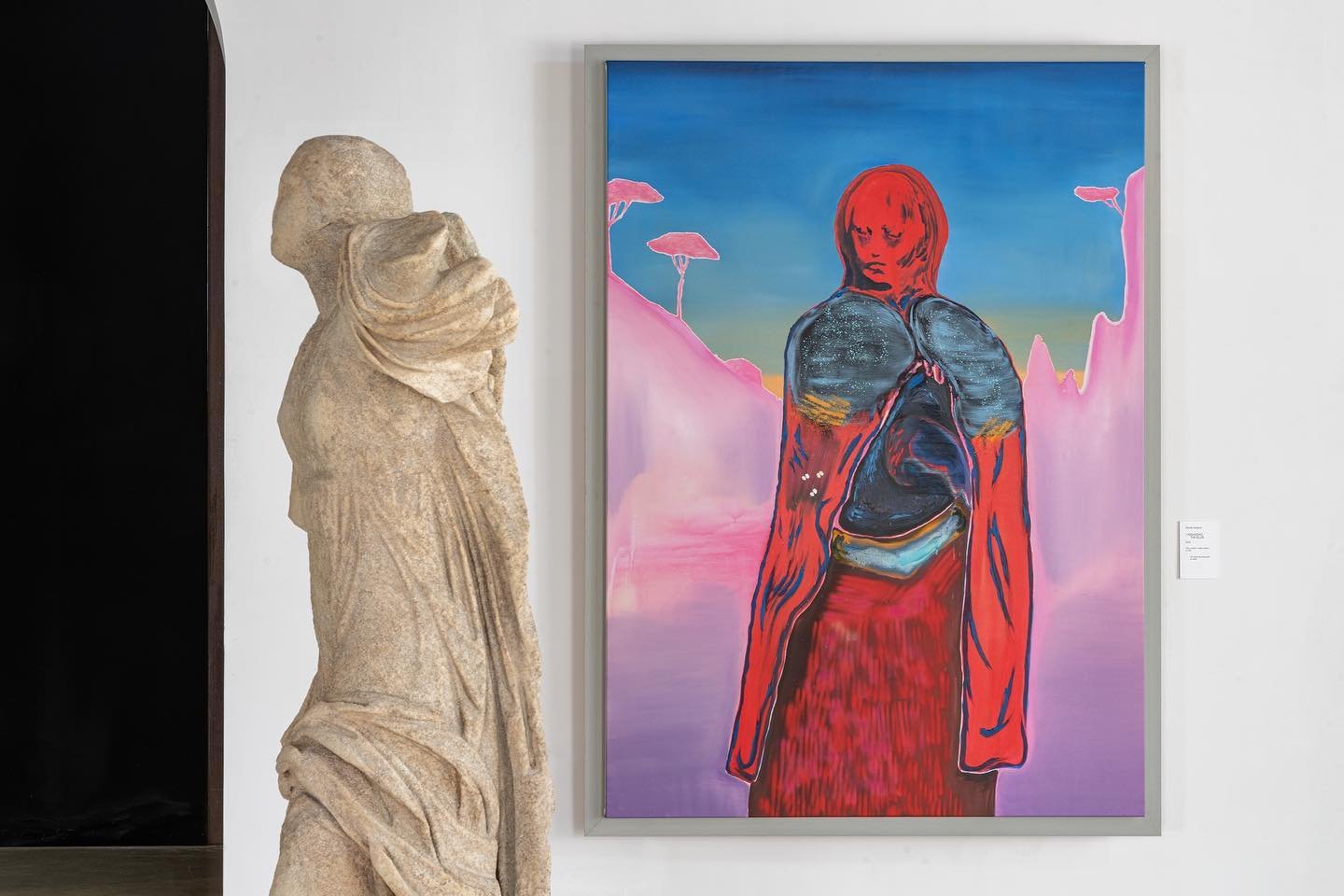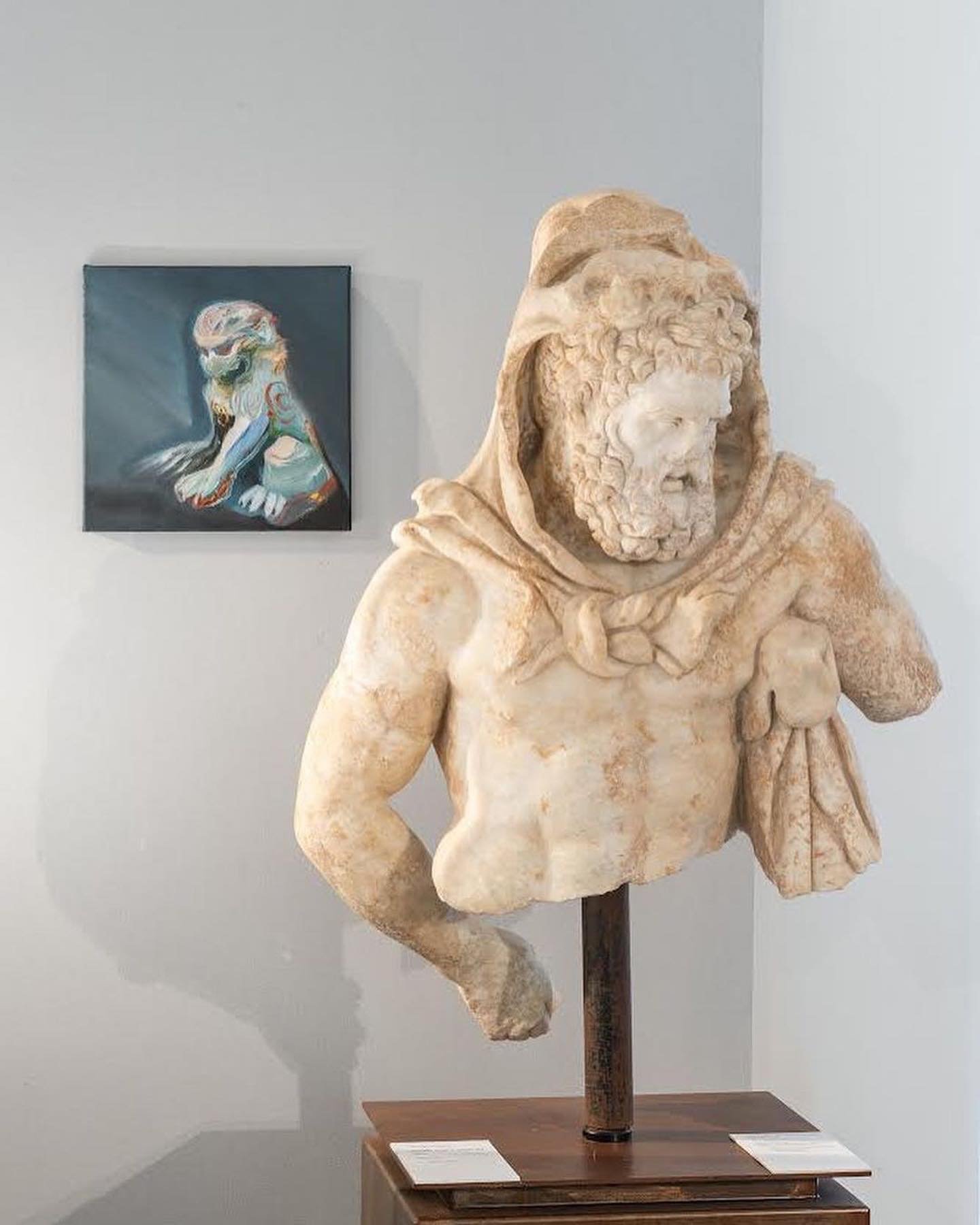 The exhibition itinerary winds through the twentieth-century rooms of the ancient factory that incorporate and fit into the Roman walls of the classical age. Serpetti’s canvases fit into this stratification, offering, in a contemporary key, a possible and real way of interacting between cultural heritage and contemporary creation, making clear and evident the need to consider our historical and cultural roots. For example, Chimera and Study for lion enter directly into relationship with Hercules and his leontè-skin of the neme-mythical lion and precious trophy of the first effort.