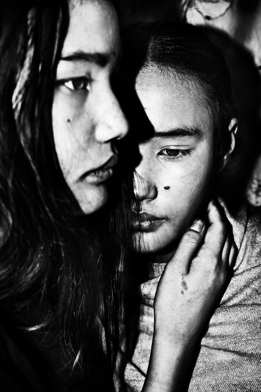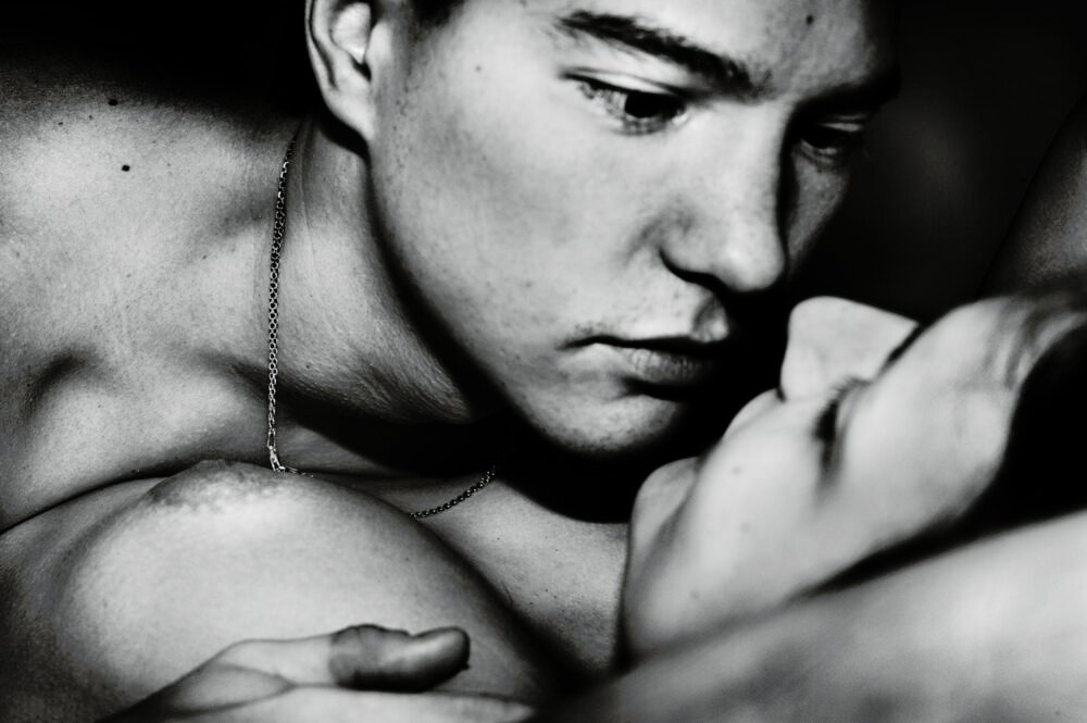 There, the meeting with James marked his future. He hosted him in his house. Jacob found a sense of family there and perhaps a father figure. He taught him how to hunt and fish to provide for his family. He taught him when to speak and when to be silent. How to be present. “For the years I was in Tiniteqilaaq, James’ house felt like the center of the universe. It was a house full of laughter, tears and silence. A place of warmth and embrace. Today the house is empty…” recalls Sobol. He was like a father to him, as he himself is today. This book is a reminder of the time and love he shared with James and his children. James’ House is the second book in the Greenland Trilogy. All of Jacob’s photographs are ultimately love stories. Love for life. For the other. For the family. “James’ House” and even more so “Hunting Heart” are love stories. A second experience that changed him was the meeting with Sara, with whom he had his two children and with whom he shares his life and approach to photography – she is also a photographer – and co-author of this project on display. Their entire world is told in one continuous shot, like a flow of consciousness through images, in an inseparable circle that makes up their daily life. Even in the deepest intimacy of childbirth. Two “hunter hearts” who recognized and chose each other, finding their “strawberry place”. There, on the small Danish island, the rhythms of nature, fishing – which for him means providing for his family, as he learned from James – photography and love mark the rhythms of their existence. She uses color. Jacob uses extreme, flashed black and white. That sudden cast of light on his subjects underlines their intimacy. The camera is an extension of him looking at the world. For him photography is an instrument of knowledge, of others and of oneself. He doesn’t plan what to shoot. He just does it. How to breathe. How to speak, for him so taciturn and reserved. His photography becomes a free zone in which to express instincts and emotions, it is an introspective journey to meditate on the nature of things through images. Sobol does not get fleetingly close to his subjects. Not even when it’s a brief encounter, attracted by a face or a situation. Sometimes, he shares their daily life. Sobol cancels distances, which become decidedly intimate. From the first moment, his photograph takes the form of a personal and travel diary and is so close to the person he portrays that it makes us forget his presence and leave our gaze alone in the encounter with the other.