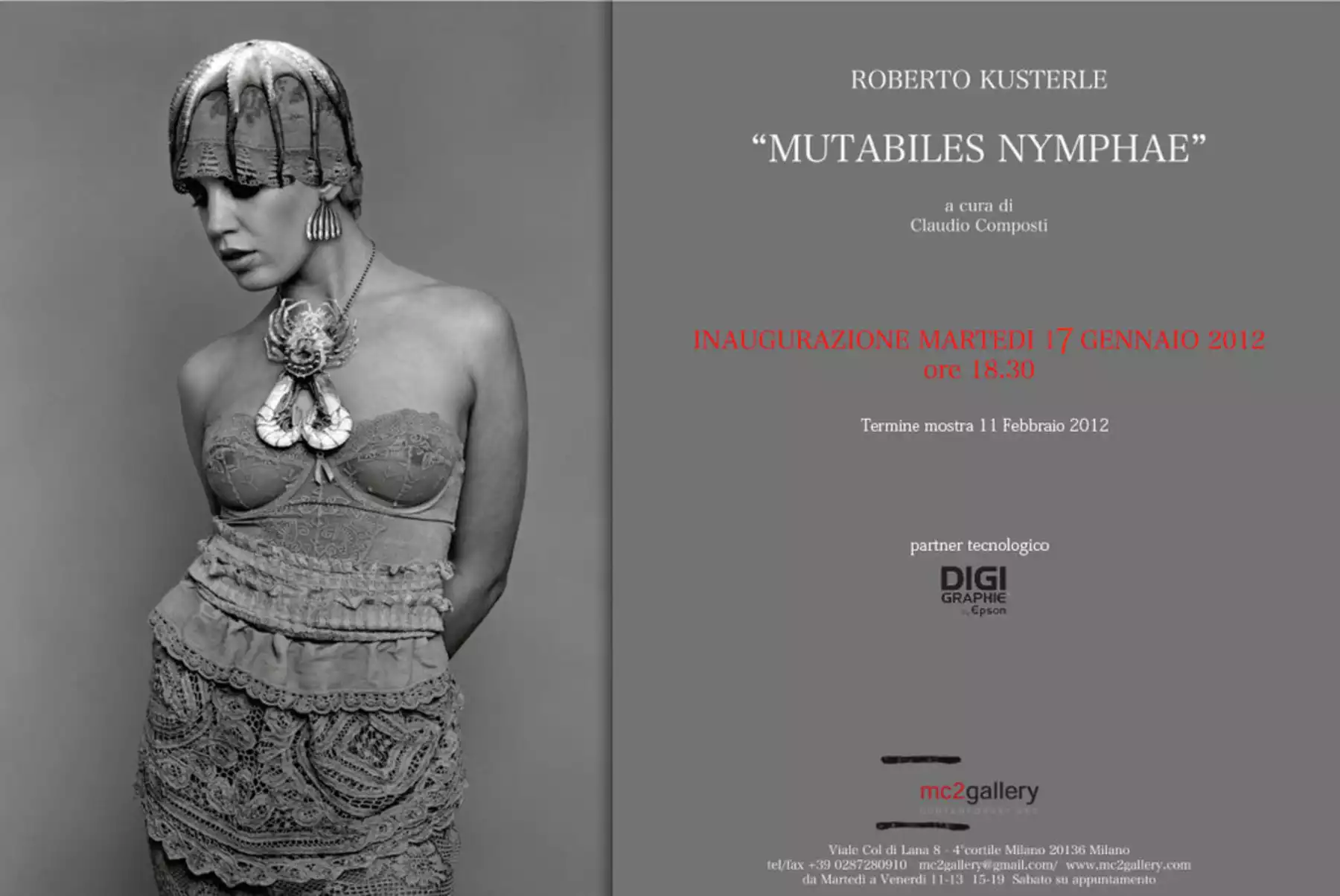 Roberto Kusterle, born in 1948, returns to the mc2gallery after the exhibitions in Italy and abroad, to open the 2012 season with the exhibition “Mutabiles Nymphae”, as in 2009 he inaugurated the season of the young gallery. A great return for a master of photography that still enchants us with its stories of poetry, dream and fantasy.