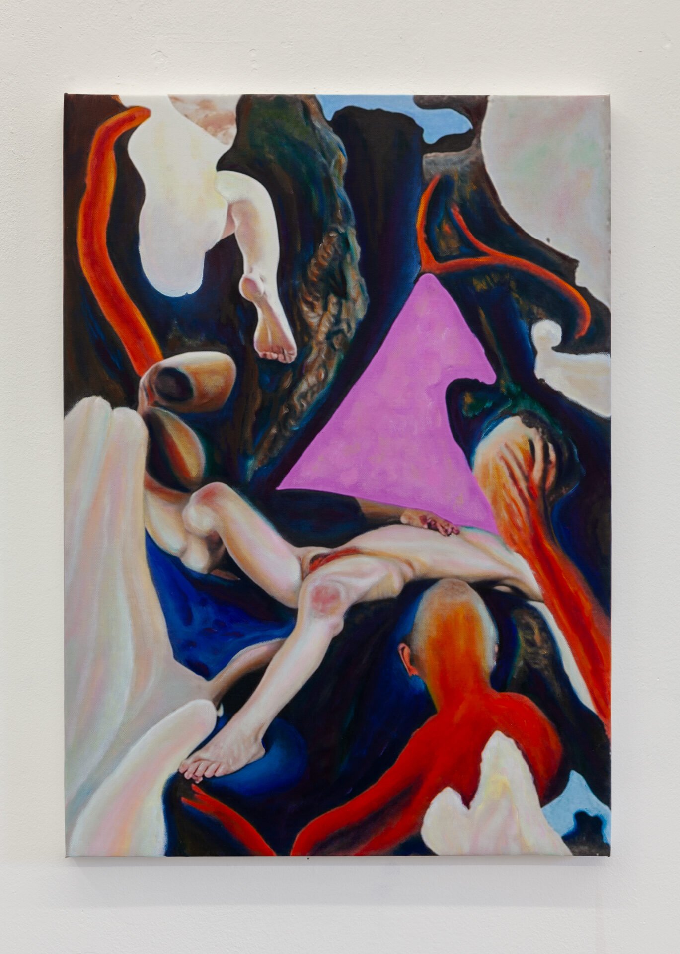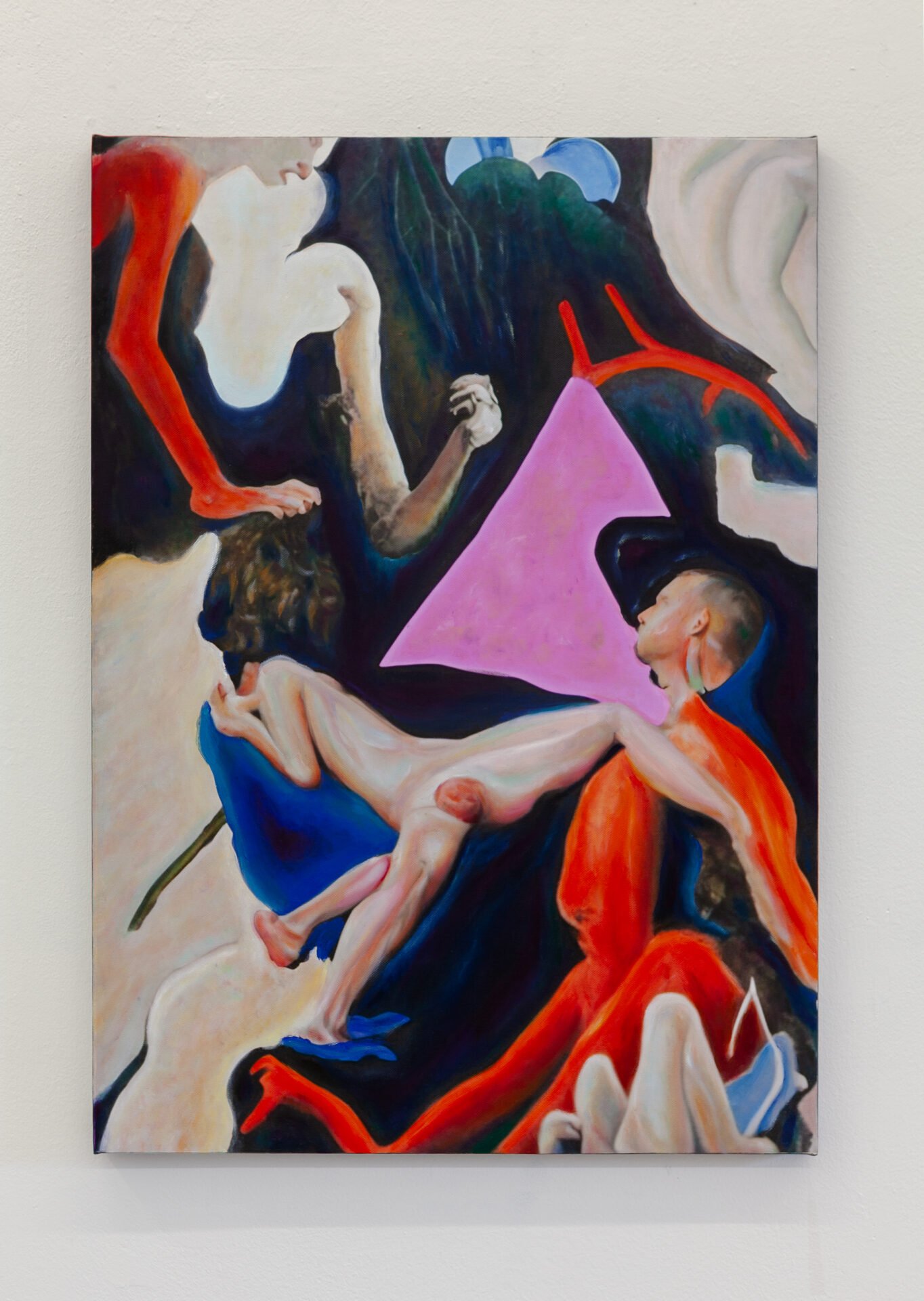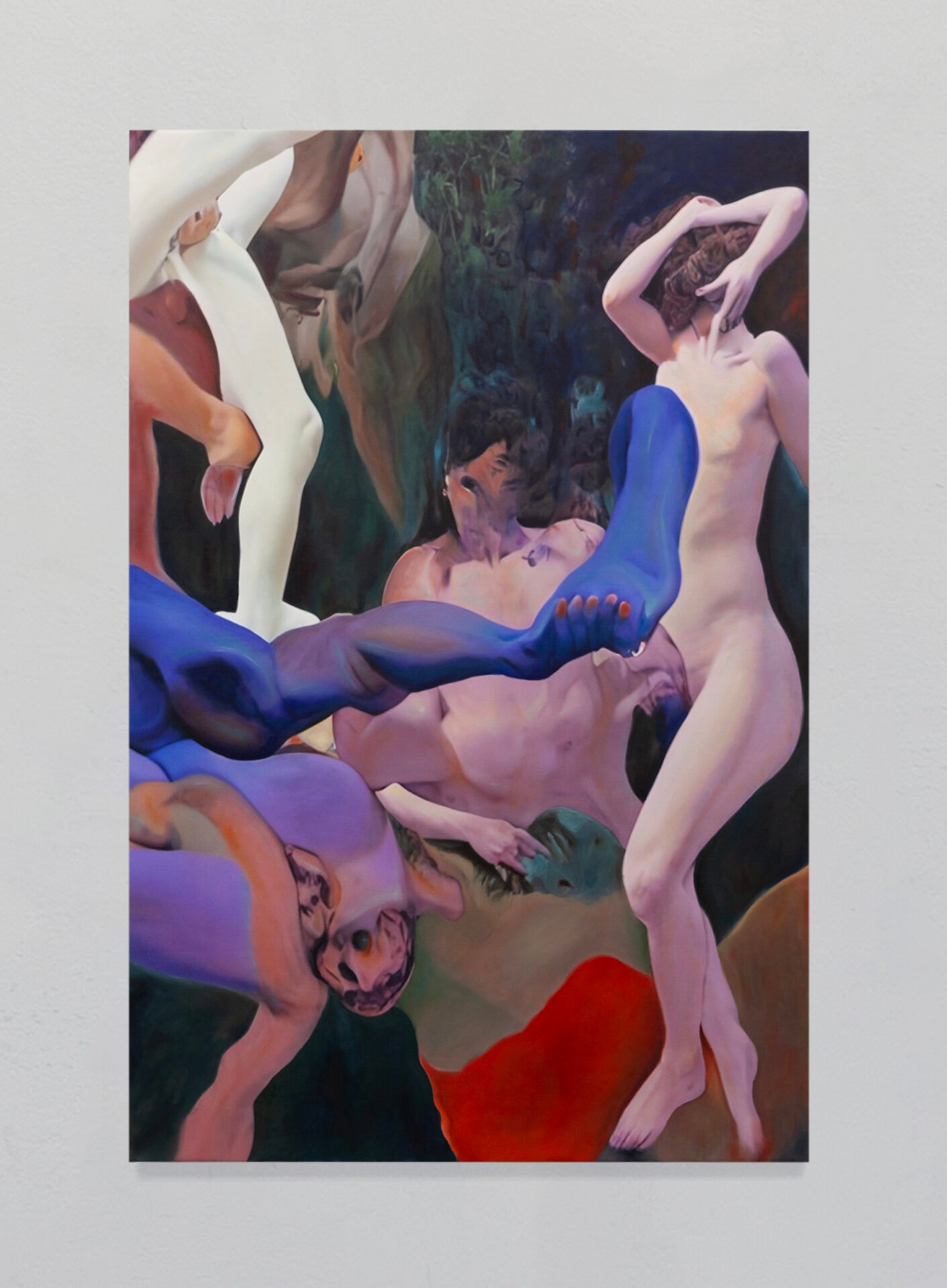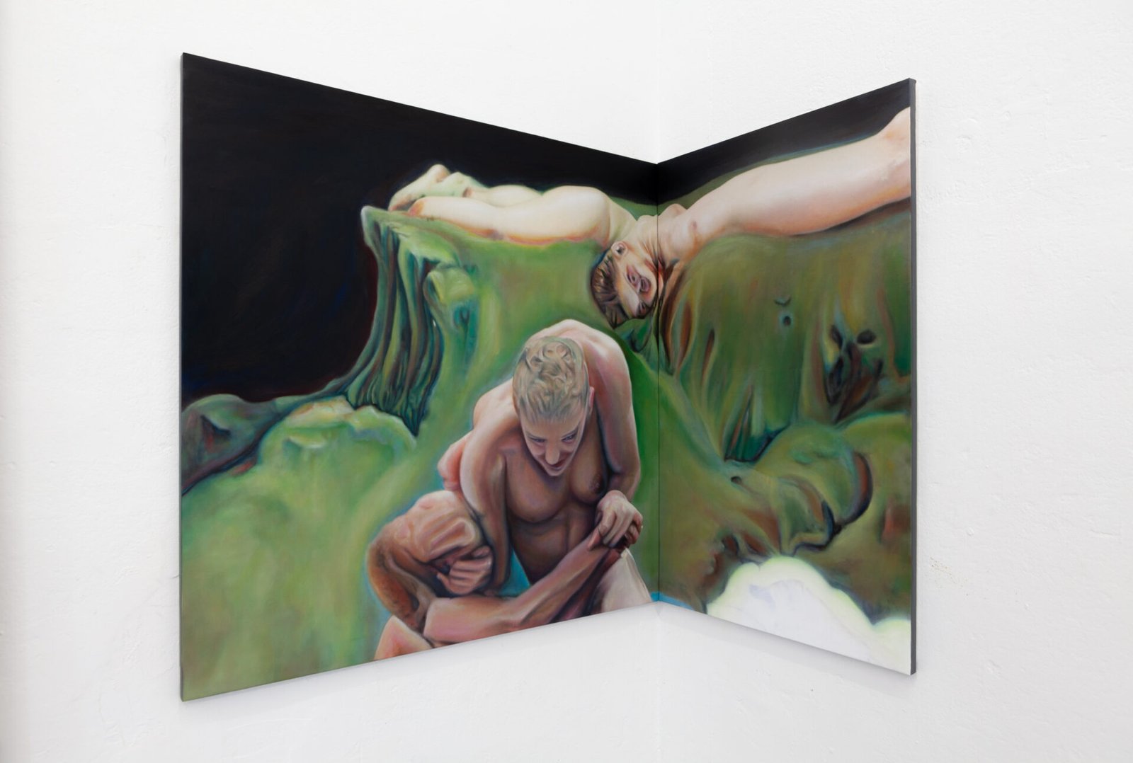 An architect by training, with a Master’s in contemporary photography from Central Saint Martins in London in 2014, he is an artist who questions the changes in reality and visual representation in the era of the Internet, social networks and new media. He therefore explores this boundary through a new lens: Artificial Intelligence, a creative “Big Brother” that, far from controlling thought, becomes an unexpected artistic partner. His “Post-Human Hallucination” fuses the primordial gestures of oil painting with cold algorithmic logic, in a cyclical process that generates unexpected visions, almost digital “psycho-paintings”. By feeding the AI with his own previous works, the artist triggers an automatic learning of the software that evokes a “synthetic unconscious”, a sort of algorithmic “dream factory” with evolving knowledge. This unprecedented collaboration explores a “new ecology of visions”, where the artificial nature of the painting becomes a territory of almost mystical investigation, a “bottomless abyss” from which new and disturbing forms and meanings emerge that nevertheless belong to us. As in Bosch’s “The Temptation of Saint Anthony”, in which the sacred is constantly threatened by the profane, so in Catarinella’s work the purity of the artistic intention is confronted with the unexpected drifts generated by the machine. Far from falling into an Orwellian “groupthink”, the artist leads this unprecedented collaboration towards a redefinition of the boundaries between the human and the machine, between the transcendence of the sacred and the concreteness of the profane, in an artistic dimension that pulsates with a new, disturbing contemporary sacredness and makes us spectators of these modern altarpieces that feed on hieratic and mysterious figures, but with a strong archetypal and citational value and therefore already familiar, despite the total innovation of the forms.