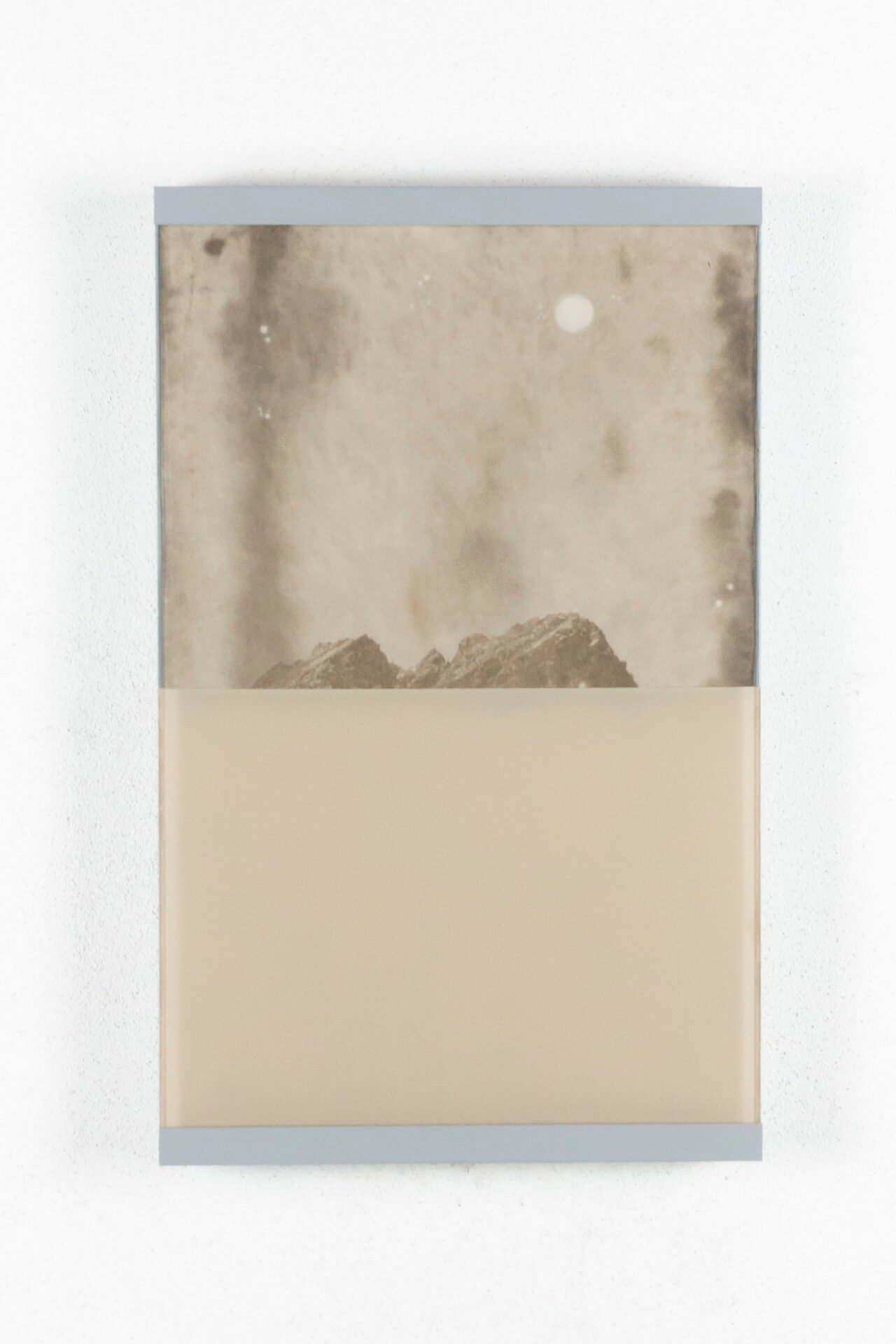 2025, Acrylic painting on glass, silver gelatin print from smartphone, wood and aluminum structure.