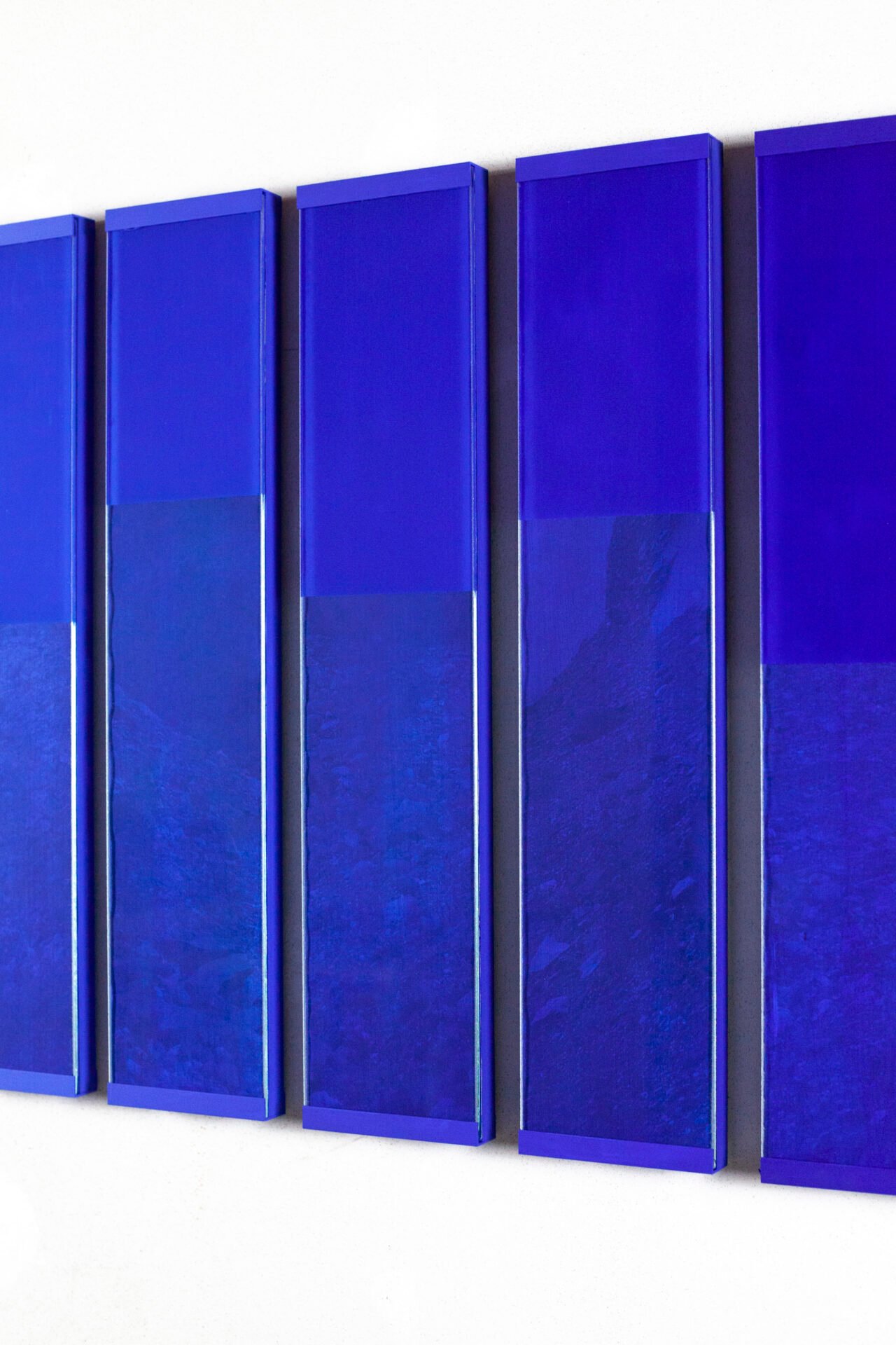 His practice develops from a photographic process, with a painterly and installation-based approach. Engaging with the theme of image production as a force shaping our experience of the world, his work employs transparencies, layers, and painted glass to explore the relationship between the visible and the invisible, between physical presence and the digital realm. Within this perceptual gap, his works function as devices for deceleration—obstacles that invite the viewer into a process of visual excavation, a continuous shift between presence and absence.