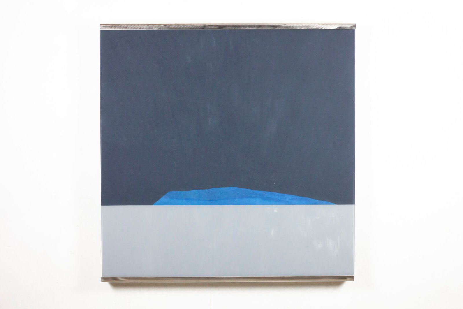 2025, Two overlapping acrylic-painted glass panels, aluminum, stainless steel supporting structure