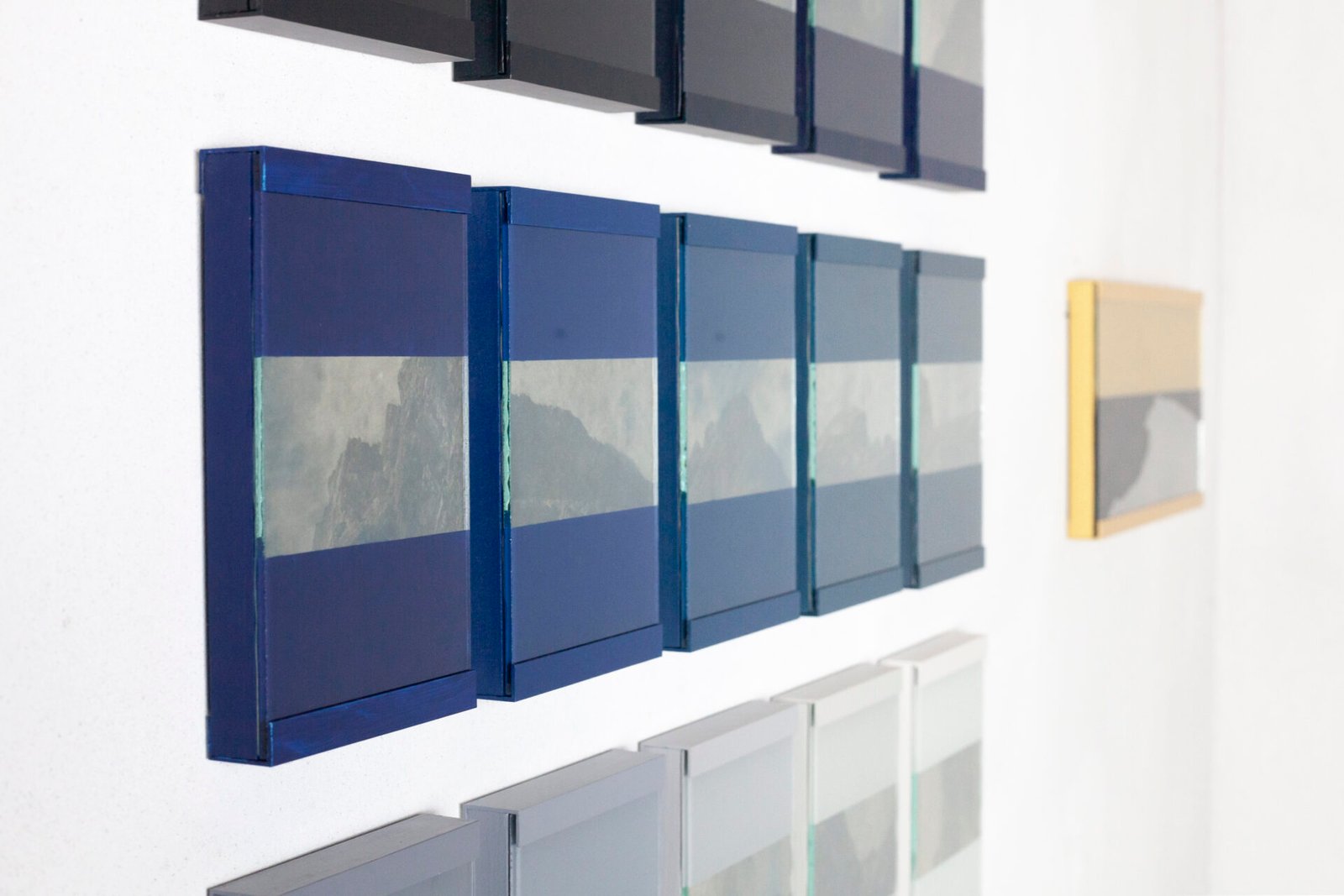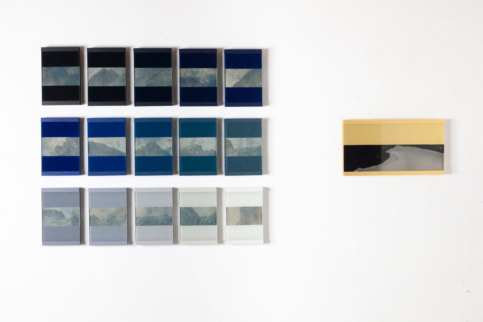 His practice develops from a photographic process, with a painterly and installation-based approach. Engaging with the theme of image production as a force shaping our experience of the world, his work employs transparencies, layers, and painted glass to explore the relationship between the visible and the invisible, between physical presence and the digital realm. Within this perceptual gap, his works function as devices for deceleration—obstacles that invite the viewer into a process of visual excavation, a continuous shift between presence and absence.